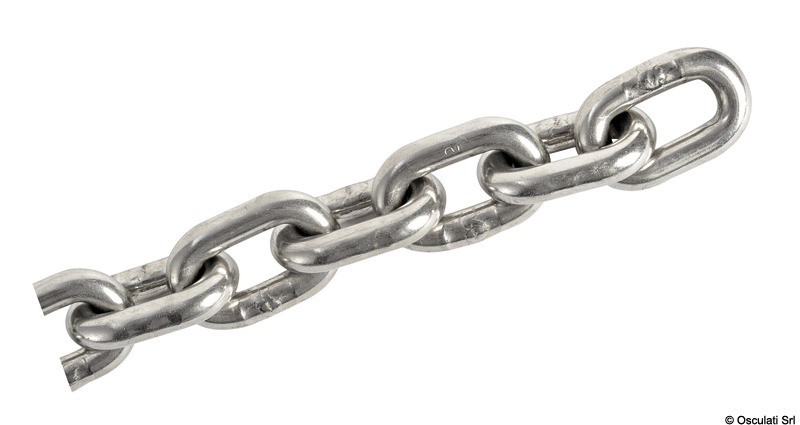 Adatta per salpa ancore. Le matasse di catene sono consegnate in casse di legno o confezioni pratiche da stoccare e movimentare. La catena è marchiata ogni metro "OSC" come segno qualitativo e distintivo.