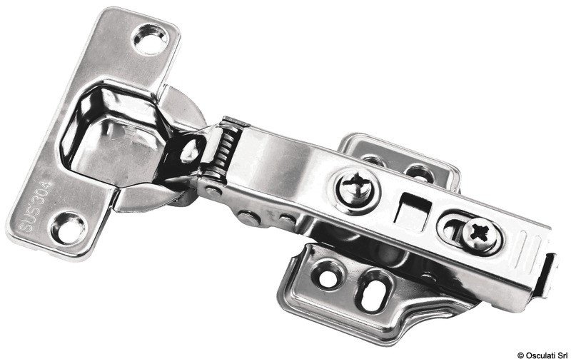In acciaio inox. Apertura a 105°. Oltre 45° lo sportello resta aperto in qualsiasi posizione si desideri. La chiusura è frenata Soft Close. Complete di dispositivo click-on per sgancio rapido dello sportello.