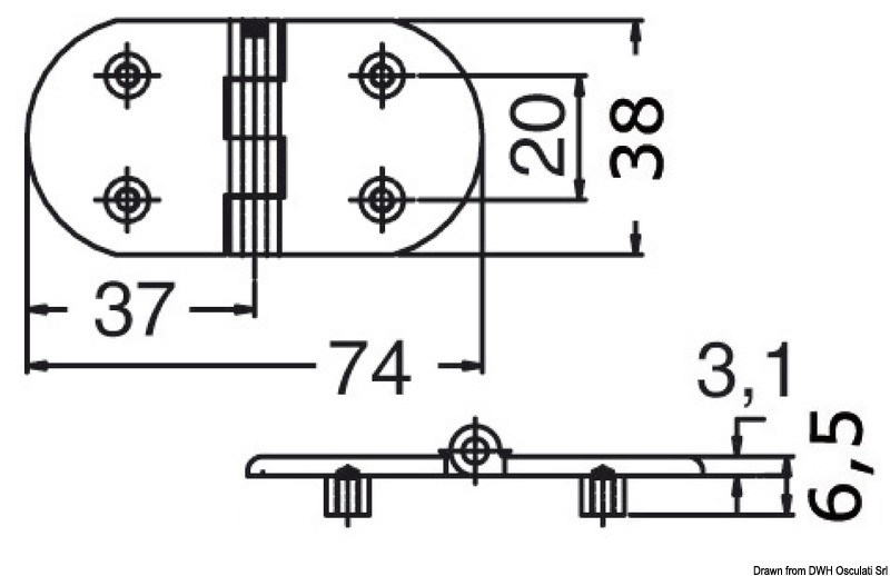 In acciaio inox AISI 316 lucidato a specchio. Fissaggio dal lato inferiore tramite 4 boccole filettate. Asse centrale frenato con movimento SOFT, ed intestato alle estremità.