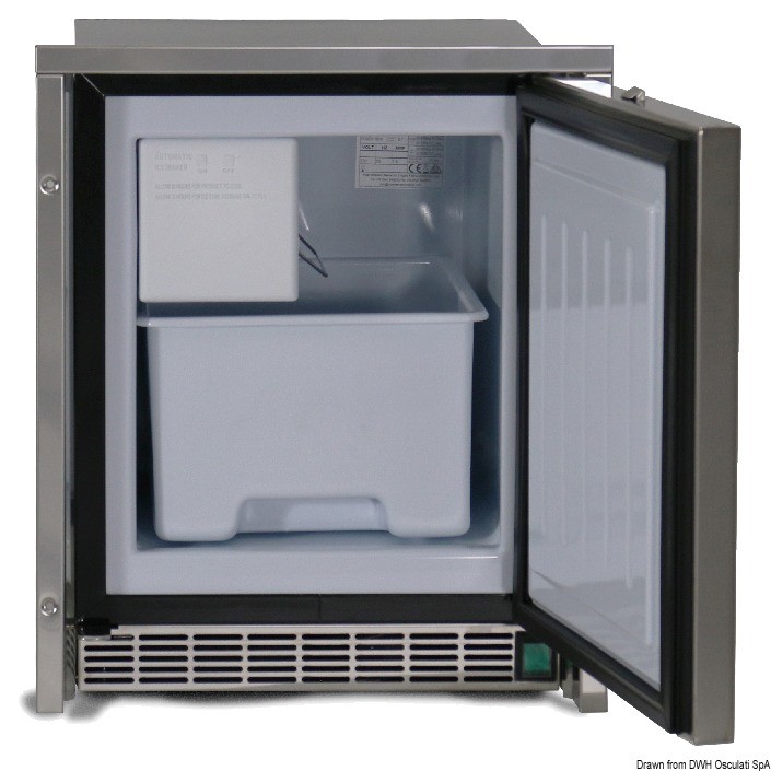 Stesse caratteristiche del modello White Ice, eccelle in flessibilità d’installazione. Grazie al posizionamento del gruppo motore posteriormente al mobile freezer, rende il prodotto applicabile in spazi ove l’altezza è ridotta, come nel caso delle sedute tipiche nei pozzetti esterni. La cornice in acciaio inox permette infine un'integrazione elegante e funzionale in qualsiasi imbarcazione anche di piccole dimensioni. Produzione 8 kg/giorno. Assorbimento 180 W. Si consiglia di lasciare 5 cm di spazio posteriormente all’icemaker per lo scarico dell’acqua e per le relative connessioni. Peso 29,5 kg.