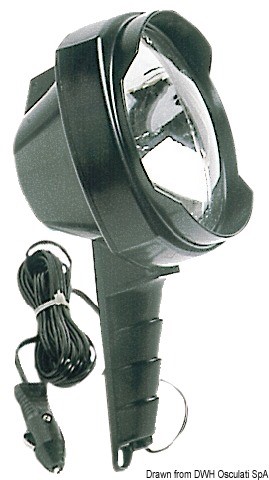 Realizzato in ABS con impugnatura. Dotato di bulbo G.E. "Sealed Beam” a tenuta stagna da 6”. Doppio interruttore: al primo scatto produce luce corta e larga (100 m), al secondo scatto produce luce di profondità (800 m). Faro robusto e molto pratico.