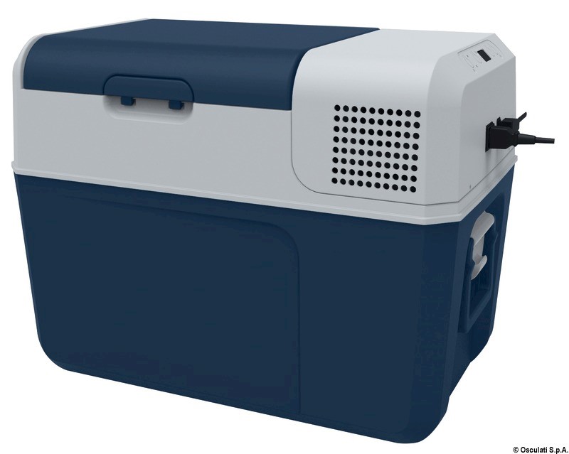 Carcassa in tecnopolimero. Compressore ermetico con controllo elettronico integrato. Temperatura regolabile +10°/-10°. Isolamento di alta qualità. Luce interna. Può contenere bottiglie da 1,5 l in piedi.