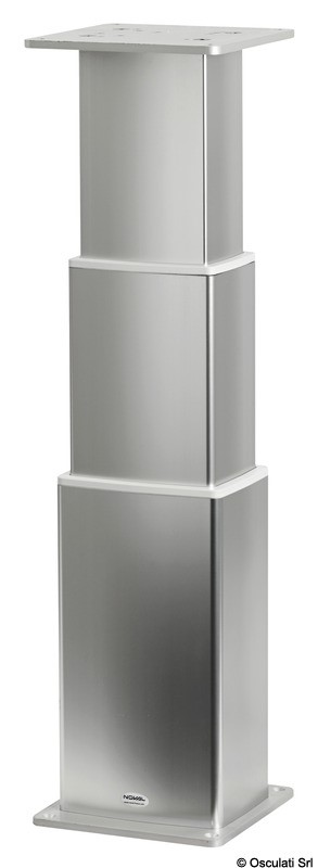 Fabbricata in alluminio anodizzata con componentistica per uso interno ed esterno. Per azionare la gamba è necessario l'interruttore 48.749.01 Può essere utilizzata in coppia acquistando la scatola di sincronizzazione 48.749.10 E' possibile realizzare altezze personalizzate con un ordine minimo di 10 pezzi.