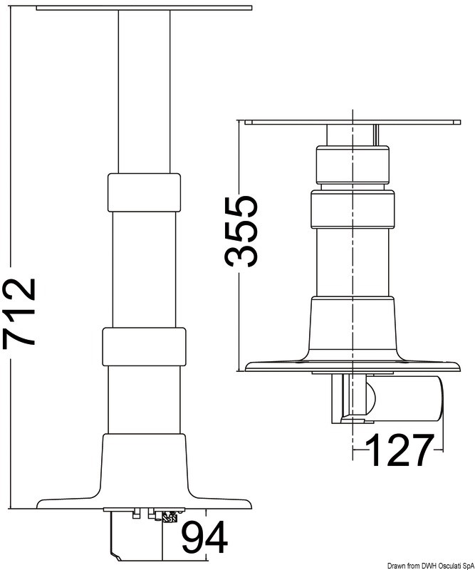 Fabbricata in alluminio lucidato a specchio e anodizzato. Equipaggiata con motore elettrico ultra-silenzioso con motoriduttore ad angolo che permette un ingombro minimo sotto il piano della base. Tri-telescopica.