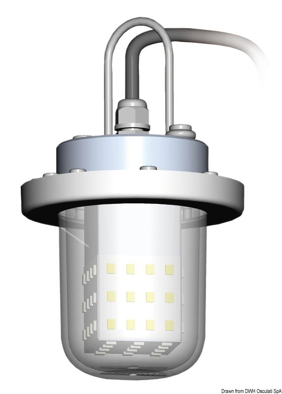 Emette una potente luce a LED bianca che attira i pesci. Carcassa in alluminio verniciato bianco. Completo di cavi di collegamento alla batteria e fusibile di sicurezza. Da usare solo immersa in acqua.
