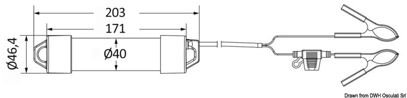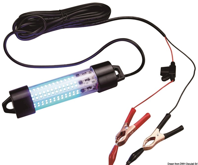 Emette una potente luce a LED bianca che attira i pesci. Carcassa in policarbonato. Luce a 360°. Completa di spinotto di collegamento standardizzato tipo accendino e di fusibile di sicurezza. Si può usare anche come lampada per illuminazione in quanto può essere usata sia immersa che a secco.