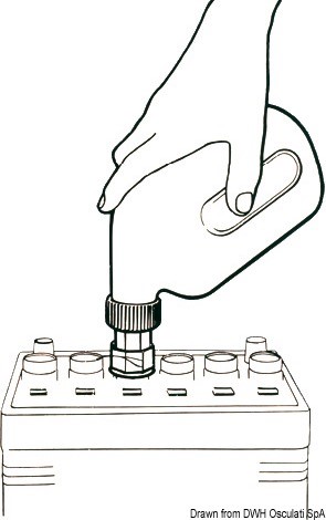 Per rabboccare il livello acqua distillata nelle batterie. Al raggiungimento del livello previsto, il flusso del liquido si blocca in automatico evitando le fuoriuscite di acido.