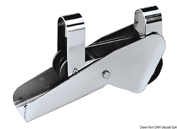 In acciaio inox lucidato a specchio, fabbricato in lamiera, con ribaltina basculante; puleggia in nylon, adatto per ancore CQR, Danforth, Bruce, Trefoil® fino a 10 kg.