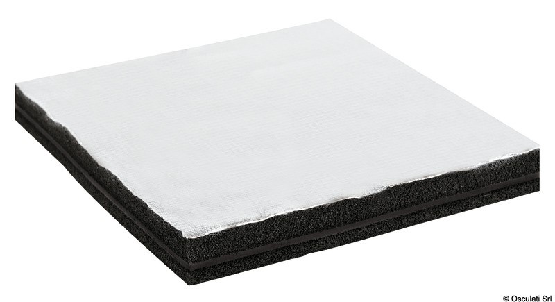 1) Tessuto fibra di vetro bianca; 2) Poliuretano 30 kg/m3, spessore 15 mm; 3) Massa EPDM, spessore 2 mm ( 4 kg/m2); 4) Poliuretano 30 kg/m3, spessore 10 mm; 5) Adesivo. Testati secondo la ISO 4589-3 determinando l'indice di ossigeno con prova a temperatura elevata. Certificati da R.I.Na. per l'isolamento acustico di locali apparato motori di unità da diporto fino a 24 m.