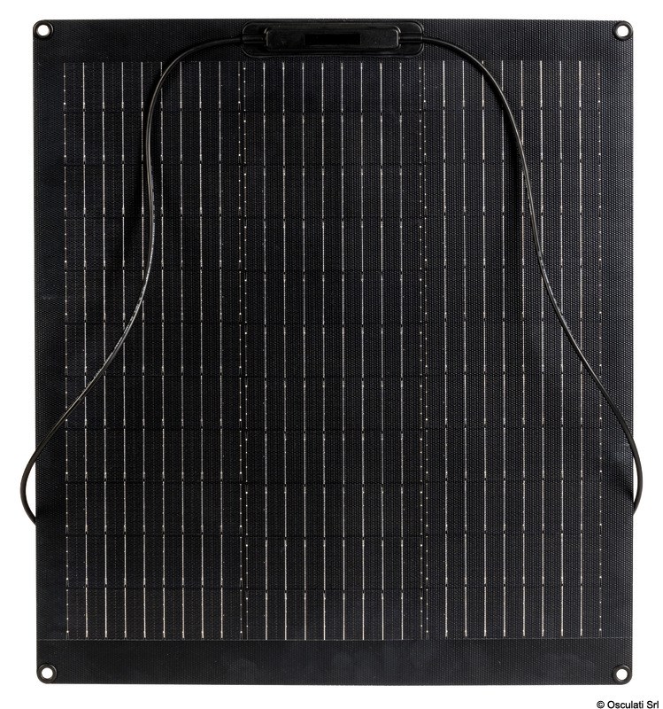 Fabbricati con celle solari aerospaziali ad alta performance. Sono pannelli di ultima generazione ultrasottili, e ultraflessibili. Efficienza celle mono 23%. Il pannello è composto da un sandwich formato da un supporto plastico + celle solari + rivestimento superficiale in resina epossidico UV resistente. Il fissaggio avviene tramite biadesivo. Cavo di connessione con spina MC4 incluso.