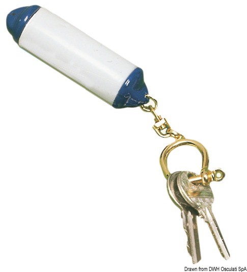 Completo di grillo e catenella in ottone dorato, regge cinque chiavi. Può essere oggetto promozionale, infatti si potrà apporre il logo del cantiere, numeri per cabina da spiaggia, camere di albergo ecc. Misure mm 80x30.