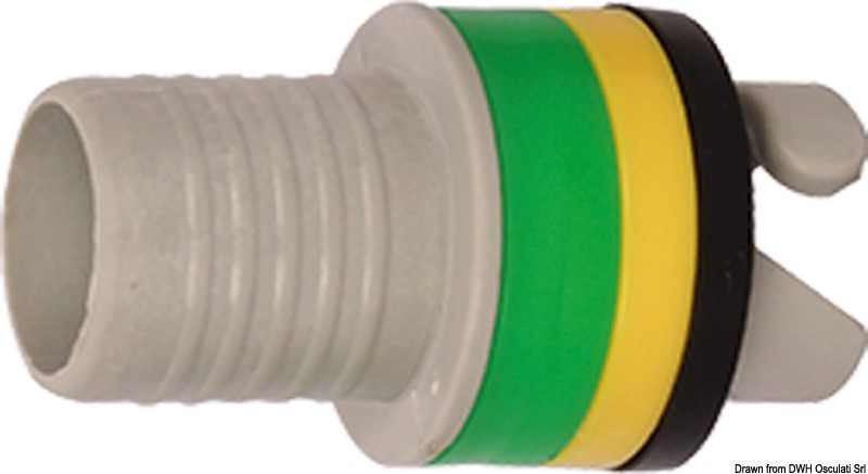 Raccordo con attacco a baionetta tra tubo gonfiatore (Ø 20 mm) e valvole di gonfiaggio tipo 66.446.64; 66.446.65 e altre equivalenti (Halkey Roberts, Ceredi ecc).