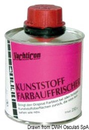Questo prodotto svolge un'azione chimica penetrando nella porosità del gelcoat, restaurando il colore originale. Non necessita alcuna operazione di lucidatura. Svolge anche azione protettiva agli agenti atmosferici. Confezione da 250 ml.