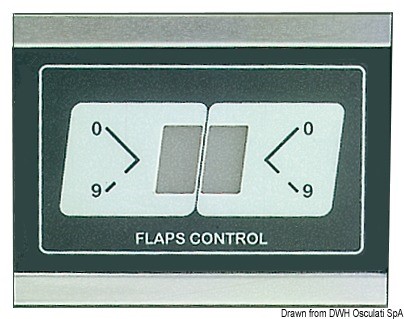 Universale per tutte le marche di Flap. Formato da un pannello che si incassa nel cruscotto + 2 sensori elettronici da fissare sulla poppa in prossimità dei flap. Taratura automatica con auto-apprendimento, alimentazione universale 12/24 V, predisposto per dispositivo di retrazione automatica dei flap allo spegnimento dei motori.