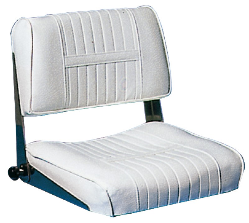 Realizzato in skay elastico bianco listellato con interno di moltopren e telaio in compensato marino. Cerniera in acciaio inox. E’ adatto sia per posto di guida sui cabinati, sia come sedile da panchetta per scafi aperti e gommoni.
