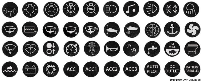 Etichette retroilluminate per interruttori antivandalo, set da 40 pezzi. Materiale della membrana resistente ai graffi e impermeabile. Stampa posteriore per una migliore durata.