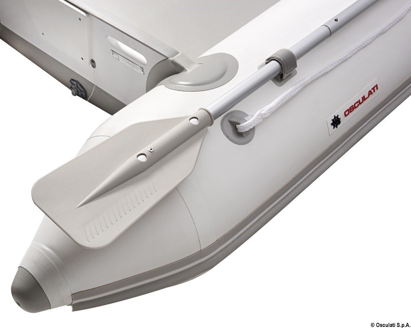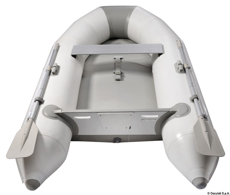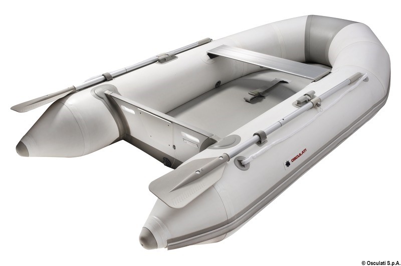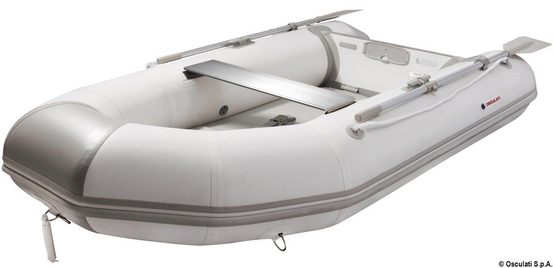 Questa tecnologia permette di abbinare la comodità di stivaggio a delle buone prestazioni in movimento. Il pagliolo pneumatico ad alta rigidità, tecnologia derivata dal settore spaziale, permette di avere un battello con un fondo rigido paragonabile a quello dei modelli con chiglia in vetroresina e e nello stesso tempo di avere un battello avvolgibile e stivabile, dote indispensabile per i tender. Completi di remi, gonfiatore e sacca per il trasporto.