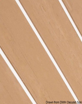 Rivestimento antisdrucciolevole finitura TEAK. Base termoplastica con due strati vulcanizzati che conferiscono al prodotto un' elevatissima resistenza sia agli agenti atmosferici che all'abrasione. Totalmente inalterabile, impermeabile, confortevole e di facile applicazione. Rivestimento antisdrucciolo per coperte, pozzetti, di produzione inglese in conglomerato gomma-sughero.